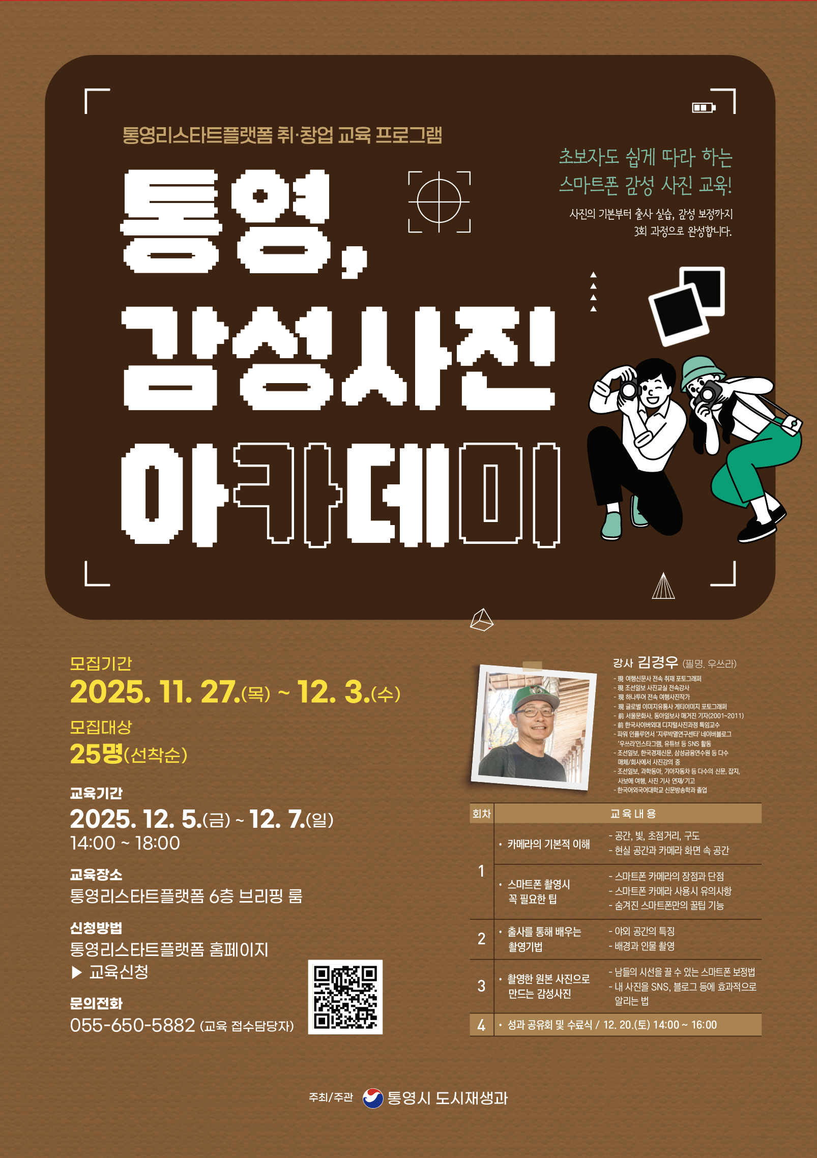 사업내용에 관한 표입니다. 사업내용 카메라의 기본적 이해 및 스마트폰 촬영시 꼭 필요한 팁, 출사를 통해 배우는 촬영기법, 촬영한 원본 사진으로 만드는 감성사진 등 참고자료 기관위치/연락처