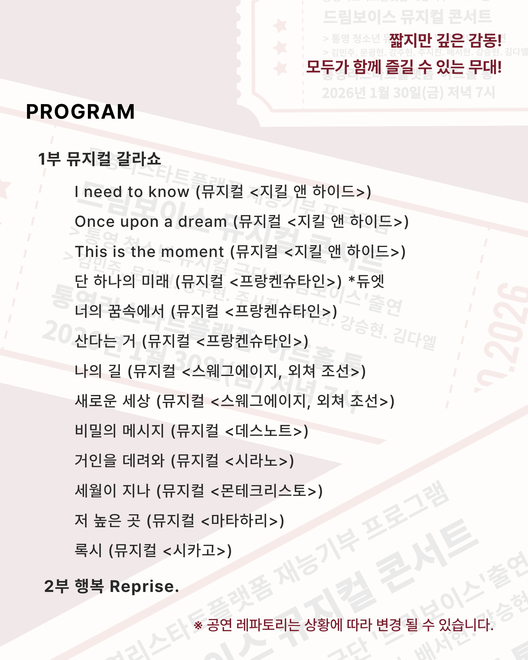 통영리스타트플랫폼 재능기부 프로그램 「드림보이스 뮤지컬 콘서트」