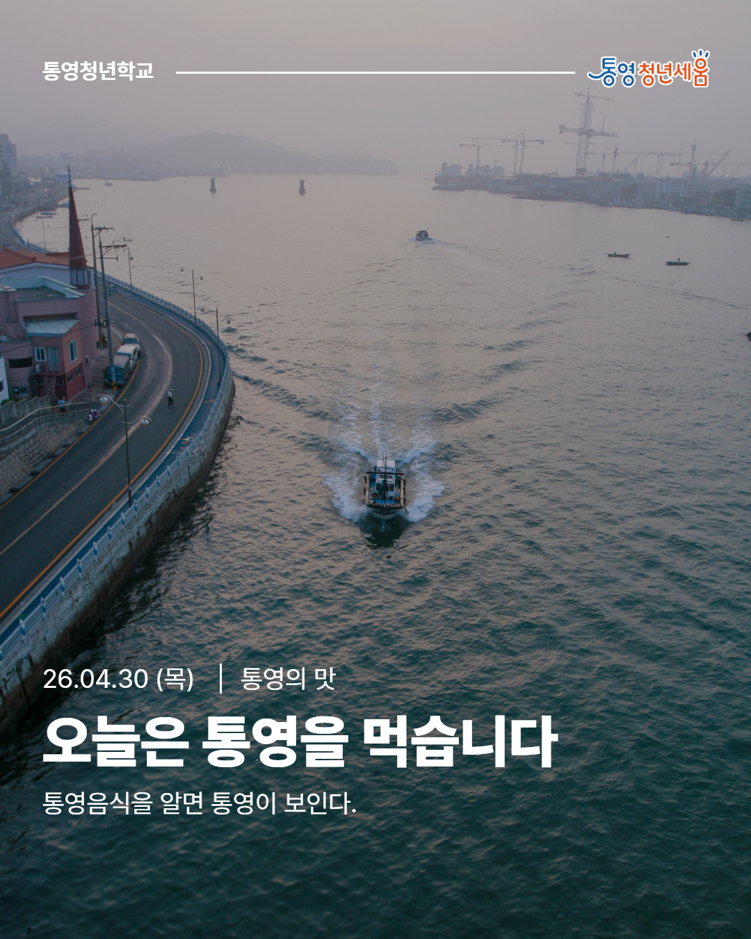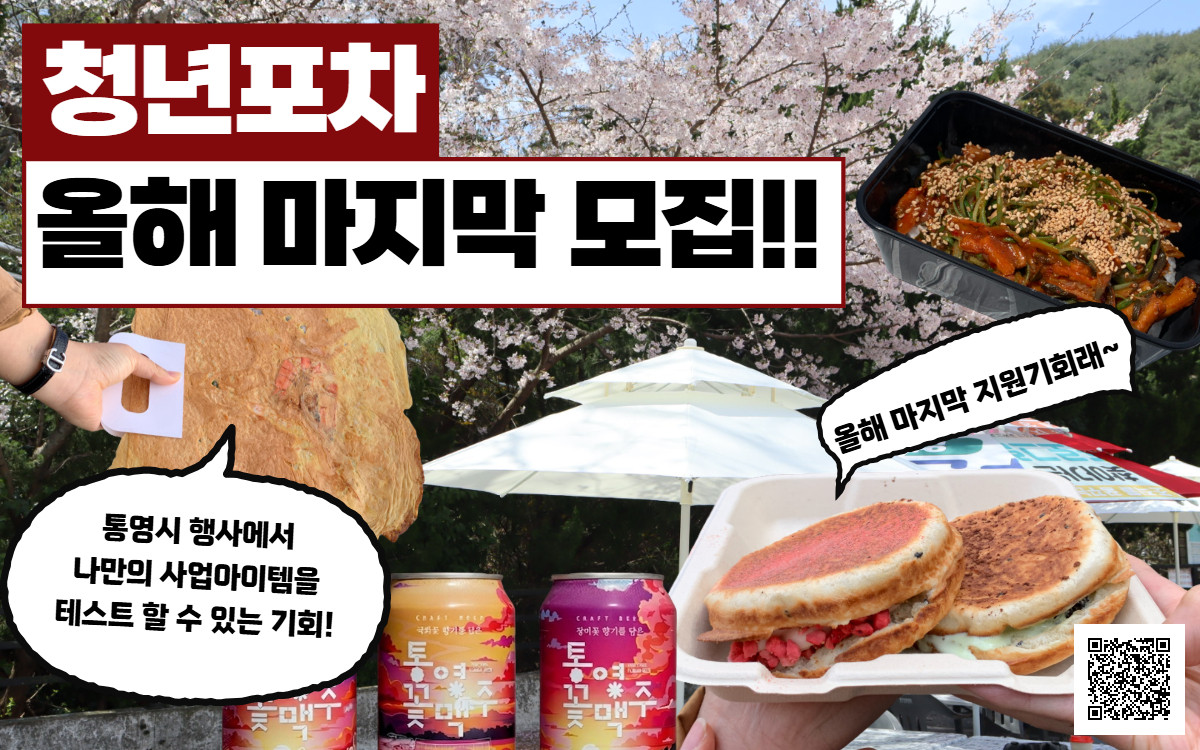 통영청년세움 센터소개 인사말 함께하는 사람들 오시는 길 청년정책 통영청년정책 전국청년정책 청년소식 신청·예약 프로그램 신청 프로그램 후기 공간안내 및 예약 대관현황 청년문화거리 청년문화거리 2026포차셀러신청 청년포차만나보기 청년문화거리일정 청년문화거리소식 FAQ 청년학교 자주 묻는 질문 1:1 문의 동아리활동 통영청년소식 공지사항 정보공개 보도자료 프로그램 갤러리 세움TV 청년동행가맹점 now 신청가능한청년정책 일자리현재페이지 교육·주거 복지·문화 참여·권리 전체보기 접수마감 미래내일 일경험 인턴 공고 신청기간2026.03.19 ~ 2026.03.26 접수마감 2026년 남해지방해양경찰청 청년인턴 채용 공고 신청기간2026.03.16 ~ 2026.03.26 접수마감 청년취업 GYM(집단상담 프로그램) 신청기간2026.02.09 ~ 2026.03.13 신청 가능한 정책이 없습니다. 신청 가능한 정책이 없습니다. 신청 가능한 정책이 없습니다. 세움 프로그램 통영청년세움의 다양한 프로그램을 만나 보세요. 모집중 통영청년학교_통영의 맛 모집중 [청년문화거리] 4월 웰니스 프로그램 참가자 모집 (4/24 금요일) 모집중 [청년문화거리] 4월 웰니스 프로그램 참가자 모집 (4/25 토요일 1회차) 모집중 [청년문화거리] 4월 웰니스 프로그램 참가자 모집 (4/25 토요일 2회차) 교육종료 통영청년학교_봉숫골 골목산책과 로컬라이프 모집완료 통영청년학교_용호도 로컬 투어 교육종료 괜찮아 마을 사례 강연 교육종료 NEXT CHAPTER : 청년의 도전은 계속된다 교육종료 통영 섬플 같이 갈래_한산도편 교육종료 문화페스티벌2회차-댄스페스티벌참가신청 새로운 소식 전체 10 2026.04. [세움소식] 2026년 청년 문화거리 365핫플레이스 청년포차 셀러 상시… 통영시청년센터 공고 제2026-4호 2026년 청년 문화거리 365핫플레이스 사업과 관련하여 청년포차에 참여할 셀러를 모집합니다.… [세움소식] 통영시 청년센터 이용자 의견조사 2026.04.06 [세움소식] 2026 통영시청년센터 누구나갤러리 [내 시선에 머문 통영] 2026.04.02 [WAVE소식] 대한민국 제1호 야간관광 특화도시 통영의 밤을 대표하는 투나잇 통영 강구안 나이트 프린지가 다시 돌아옵니다 2026.04.14 [WAVE소식] 올해 마지막 기회! 청년포차 셀러 상시모집 2026.04.11 공지사항 10 2026.04. [세움소식] 2026년 청년 문화거리 365핫플레이스 청년포차 셀러 상시… 통영시청년센터 공고 제2026-4호 2026년 청년 문화거리 365핫플레이스 사업과 관련하여 청년포차에 참여할 셀러를 모집합니다.… [세움소식] 통영시 청년센터 이용자 의견조사 2026.04.06 [세움소식] 2026 통영시청년센터 누구나갤러리 [내 시선에 머문 통영] 2026.04.02 [세움소식]「2026년 청년 문화거리 365핫플레이스」 사업 기간제 근로… 2026.03.26 [세움소식] 괜찮아 마을 사례 강연 자료(소개서) 안내 2026.03.26 더보기 WAVE 소식 14 2026.04. 대한민국 제1호 야간관광 특화도시 통영의 밤을 대표하는 투나잇 통영 강구… ???? 대한민국 제1호 야간관광 특화도시 통영의 밤을… 올해 마지막 기회! 청년포차 셀러 상시모집 2026.04.11 3월, 월간 청년문화거리 소식 2026.04.11 이번 주말, 그냥 지나칠 거예요? 2026.04.11 더 크게, 더 새롭게 돌아온 청년문화거리 365 핫플레이스 OPEN! 2026.04.11 더보기 이달의 일정 이전달 2026. 04 다음달 일정있는 날 오늘 - 일정안내 - 2026청년문화거리 안내 청년문화의거리와 함께 새로운 기회를 창출하세요. 자세히 보기 FAQ 청년포차셀러신청 남녀노소 누구나! 포차 사장님이 될 수 있다! 지금바로신청하세요! 바로가기 오시는 길 청년문화거리에 오시는 길을 안내 해 드립니다. 바로가기 정지 재생