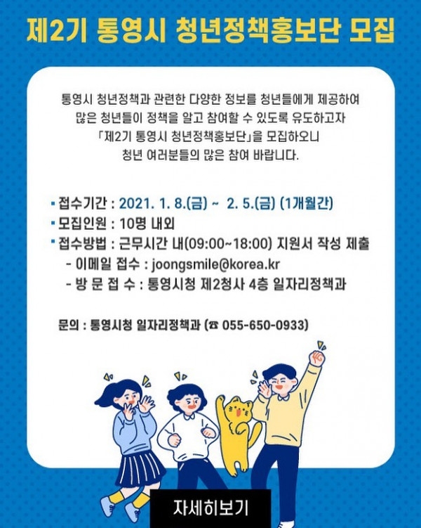 [통영소식]제 2기 통영시 청년정책 홍보단을 모집합니다!