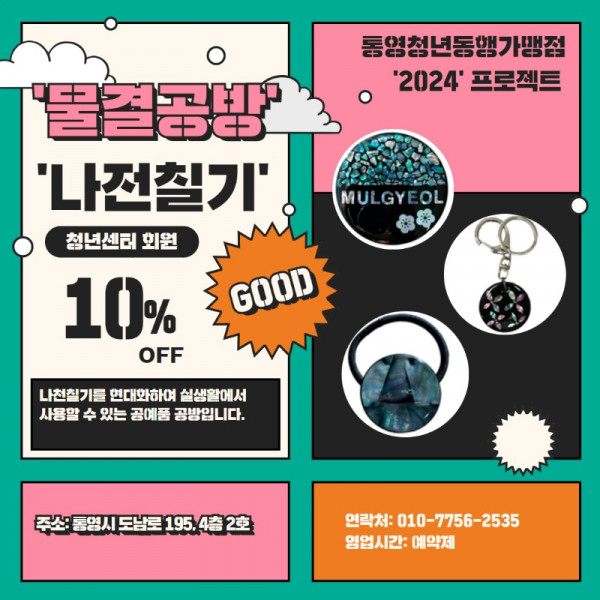 통영청년세움 센터소개 인사말 Ai 취업지원서비스 함께하는 사람들 오시는 길 청년정책 통영청년정책 전국청년정책 청년소식 신청·예약 프로그램 신청 프로그램 후기 공간안내 및 예약 대관현황 청년문화의거리 WAVE 청년문화의거리 2025포차셀러신청 TO.YOUNG.포차 WAVE 일정 WAVE 소식 FAQ 청년학교 자주 묻는 질문 1:1 문의 자유게시판 동아리활동 통영청년소식 공지사항 보도자료 프로그램 갤러리 세움TV 청년동행가맹점 현재페이지 위치 Home 통영청년소식 1차메뉴 통영청년세움 청년정책 신청·예약 청년문화의거리 WAVE 청년학교 통영청년소식 청년동행가맹점 2차메뉴 공지사항 보도자료 프로그램 갤러리 세움TV 청년동행가맹점 공지사항 보도자료 프로그램 갤러리 세움TV 청년동행가맹점 청년동행가맹점 통영청년동행가맹점'물결공방' 청년센터 2024-02-14 Hit : 476 목록