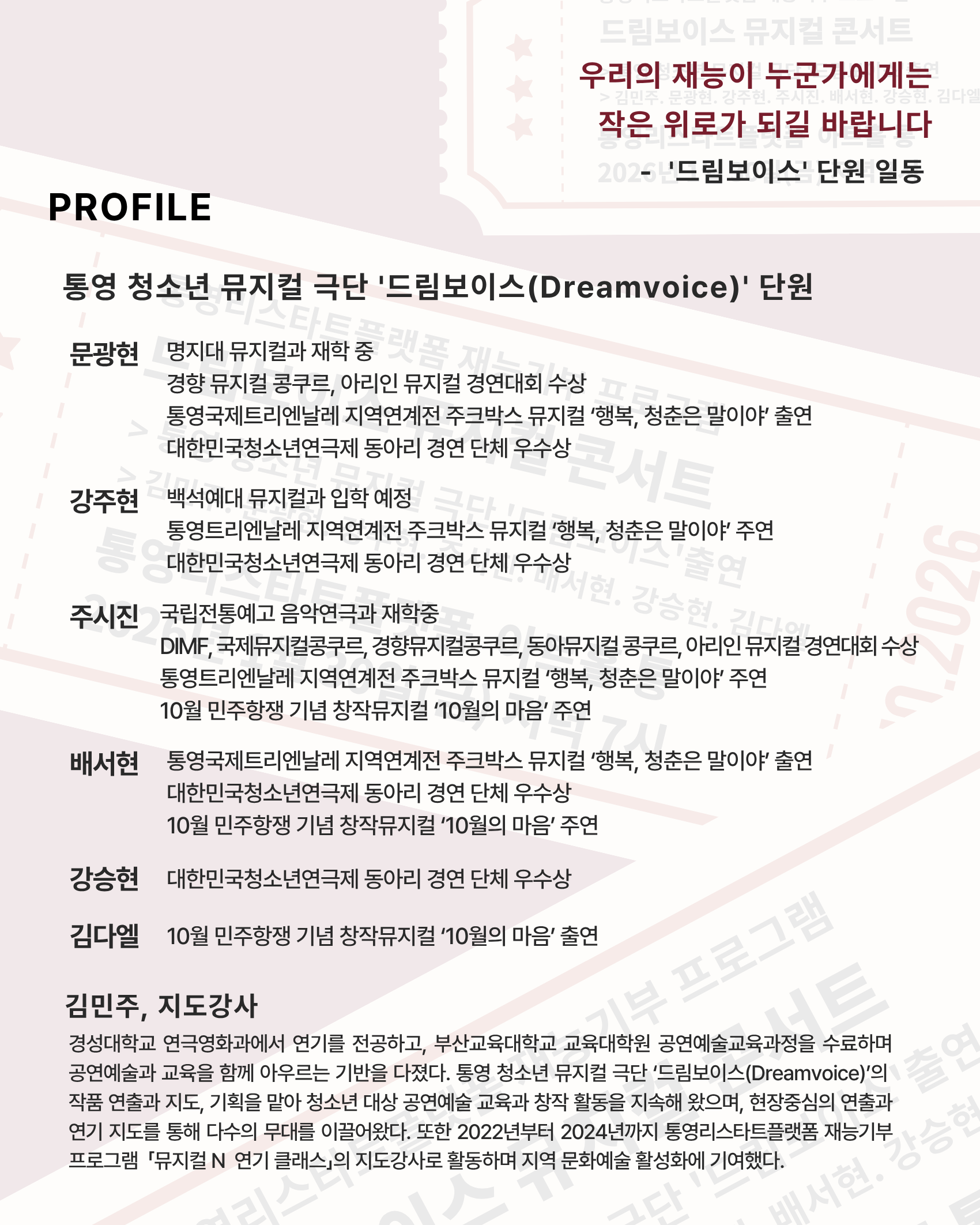 통영리스타트플랫폼 재능기부 프로그램 「드림보이스 뮤지컬 콘서트」